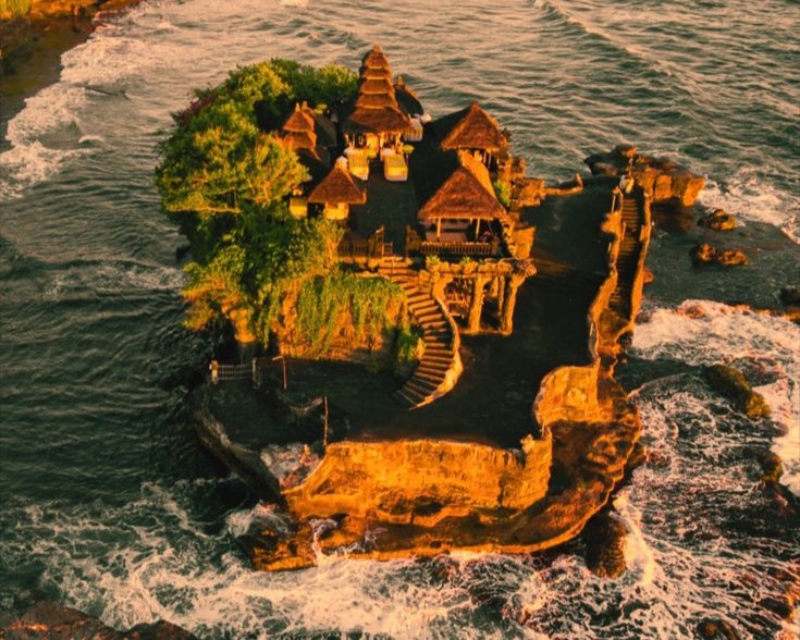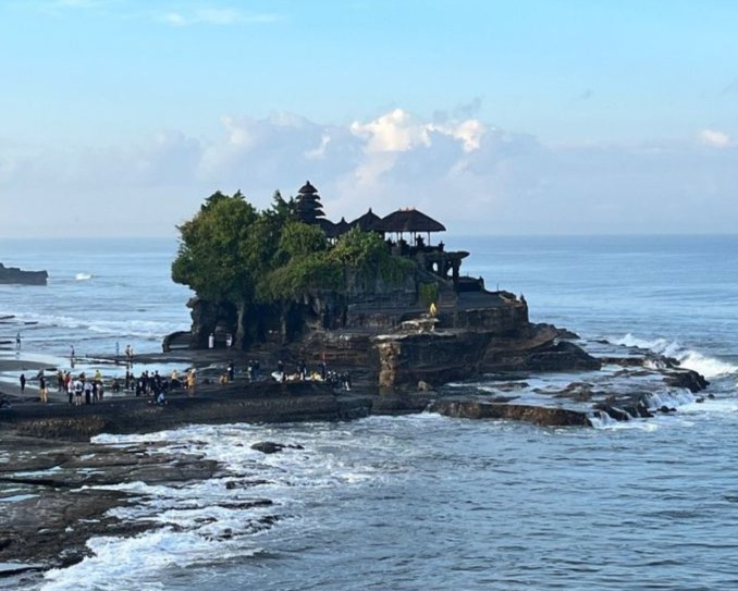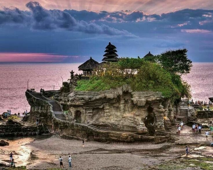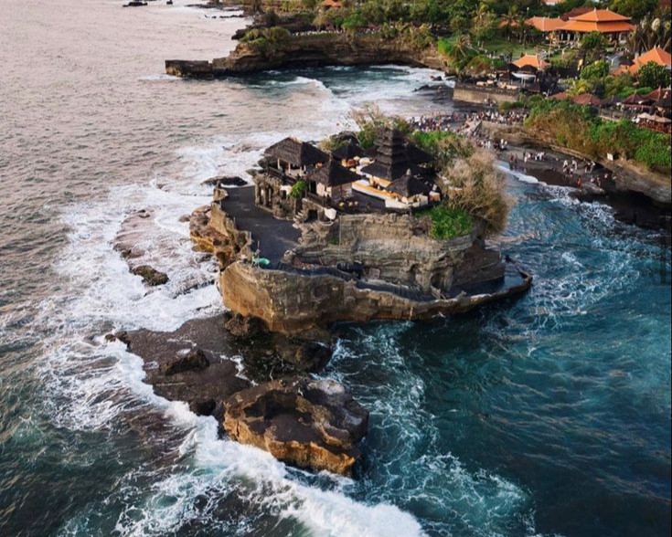 on a rocky outcrop surrounded by the sea, Tanah Lot is famous for its dramatic