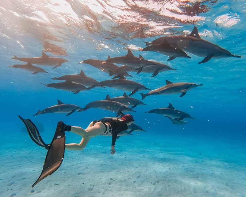 • Swim alongside dolphins for a unique, close-up experience